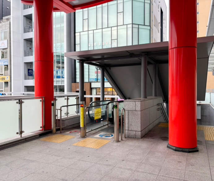 JR香椎駅西口を出たら、駅を背にして右手にあるエスカレーターに乗ります。