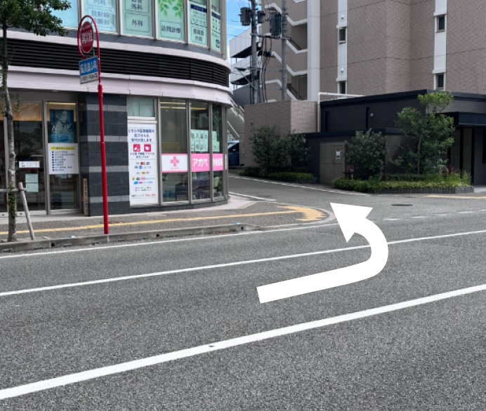 アガペ薬局さんを左折します。