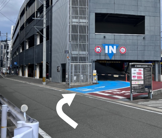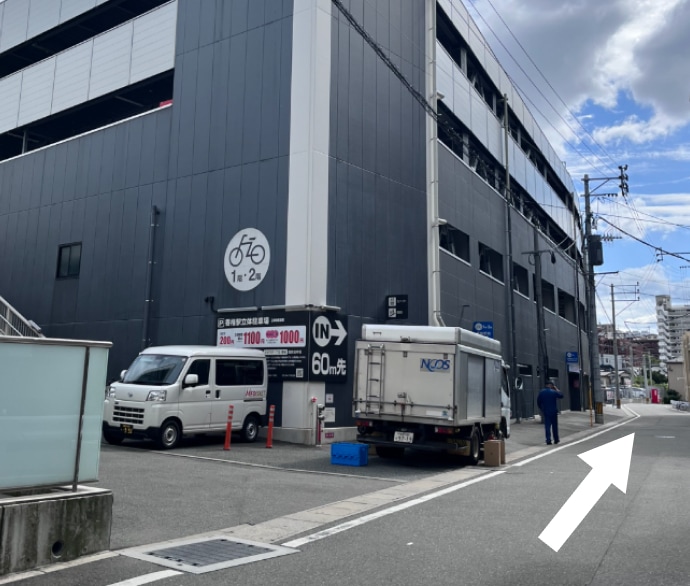 そのまま直進していただけますと提携の駐車場が見えます。