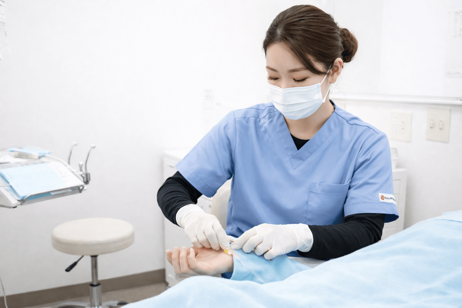 静脈内鎮静法は、点滴で鎮静薬を投与し、うとうととリラックスした状態で治療を受けていただける方法です。